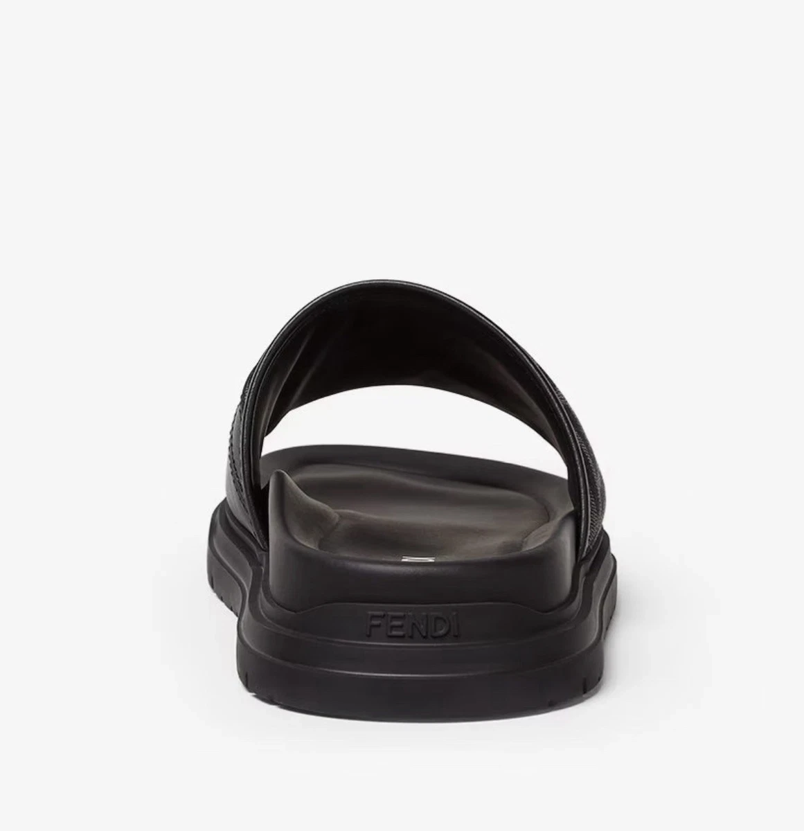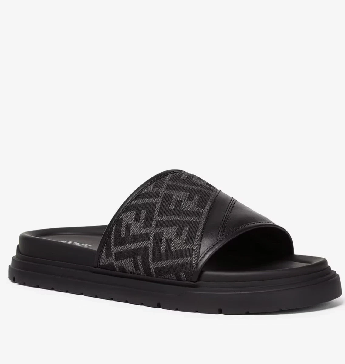 The product is a pair of Fendi Diagonal slides for men in size 9. These sandals feature a stylish slide design with a diagonal accent, perfect for adding a touch of luxury to any outfit. The brand's signature quality and craftsmanship ensure both durability and style, making these slides a versatile and fashionable choice for men looking to elevate their shoe collection.