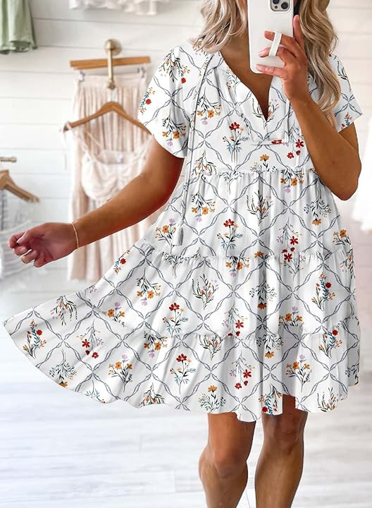 Design: mini dresses for women featured with a sexy v neck and adjustable drawstring, summer dresses for women 2025 are also pretty and unique with light floral pattern. Also the bohemian dress designed for a flowy and swing style, perfect for spring and summer
