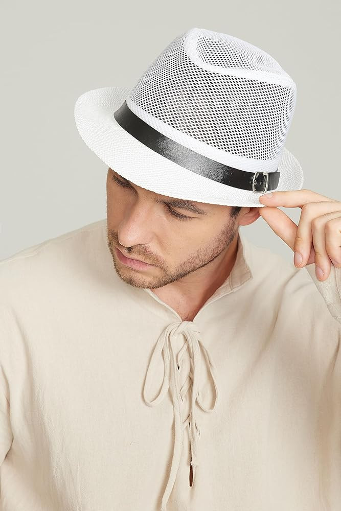 Design: Short brim and curled design. Decorated with black ribbon,Classic fedora hat style. This fedora hat suit for summer wear, because it can protect you from UV rays.
