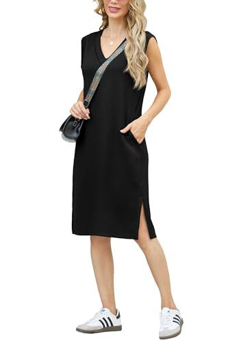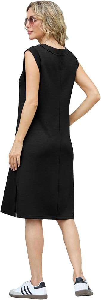 [Trendy Design]This unique midi dress has a triangle patch at the underarm for modesty without sleeves. The side slit hem accentuates your curves, making you look charming. Convenient side pockets for hands-free movement.