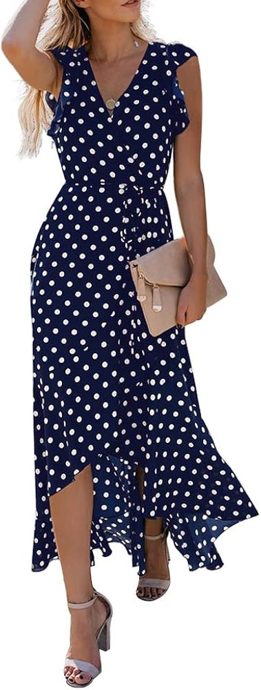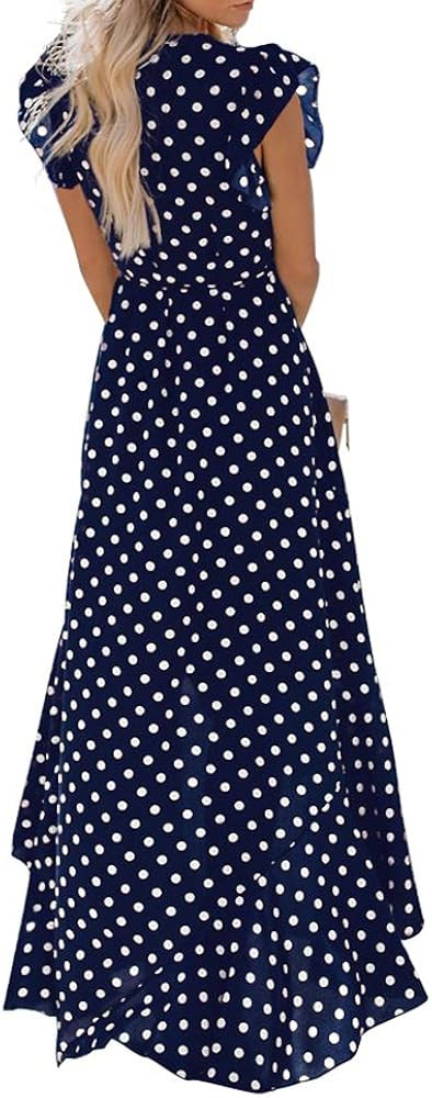 • [Trendy Design] Floor length summer floral print Maxi dress, you will look vibrant and alive, stylish and elegant in it. Cross v neck, ruffle cap sleeves, short sleeves, elastic waistband. Slim fit will show off your shapely curves well. Irregular high low hemline, as if the lotus leaf is swaying, wearing it will want to start a romantic journey.