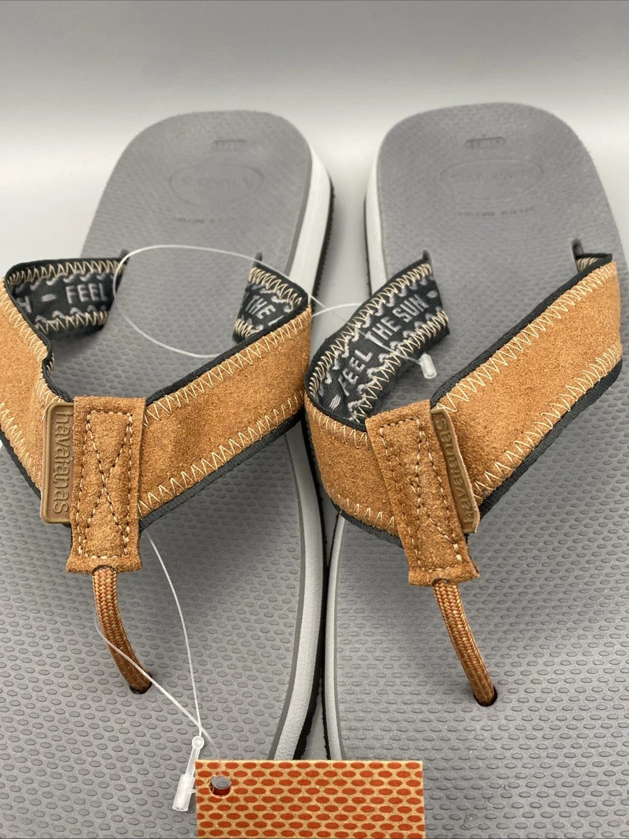 Comfortable flip flop size 9-10 Thick strap and cushioned footbed Rubber slip ons Currently sold on Amazon for $46 Polyester, leather, rubber and EVA