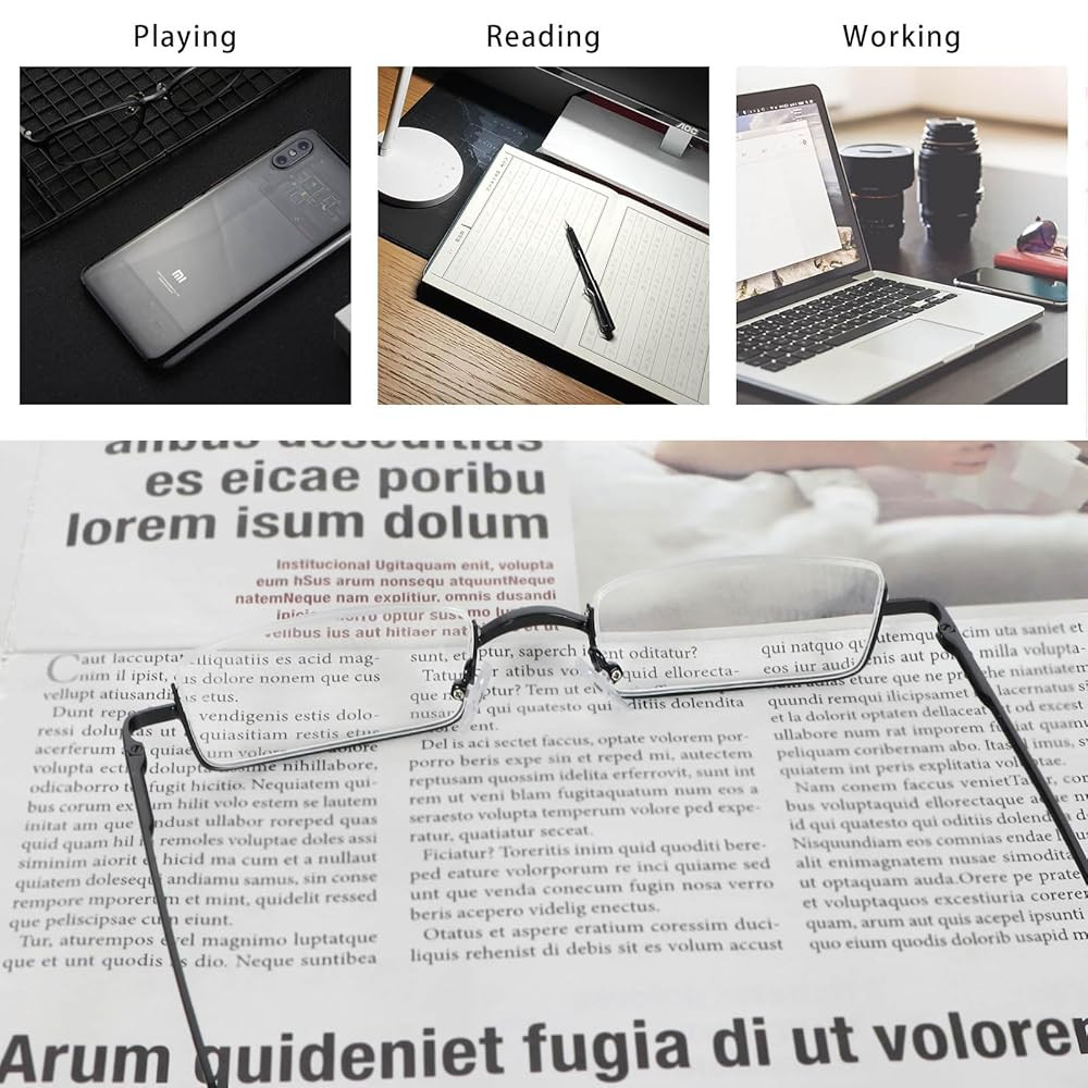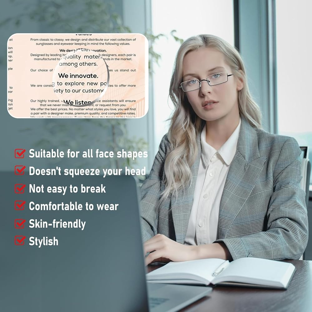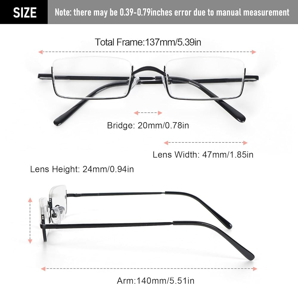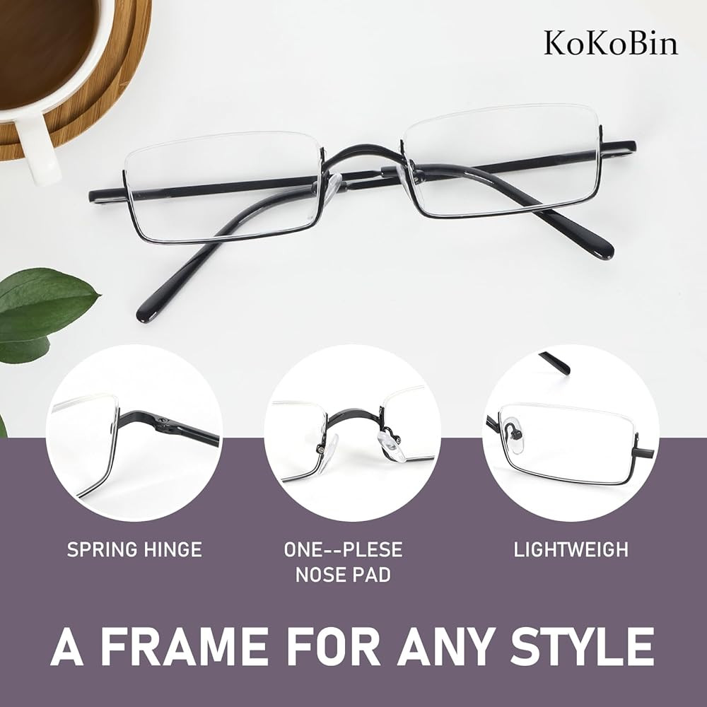 Lightweight small readers: They are inconspicuous on your face and very light, so you may not feel like you are wearing glasses. The slender frame and semi frameless silhouette provide an timeless classic style