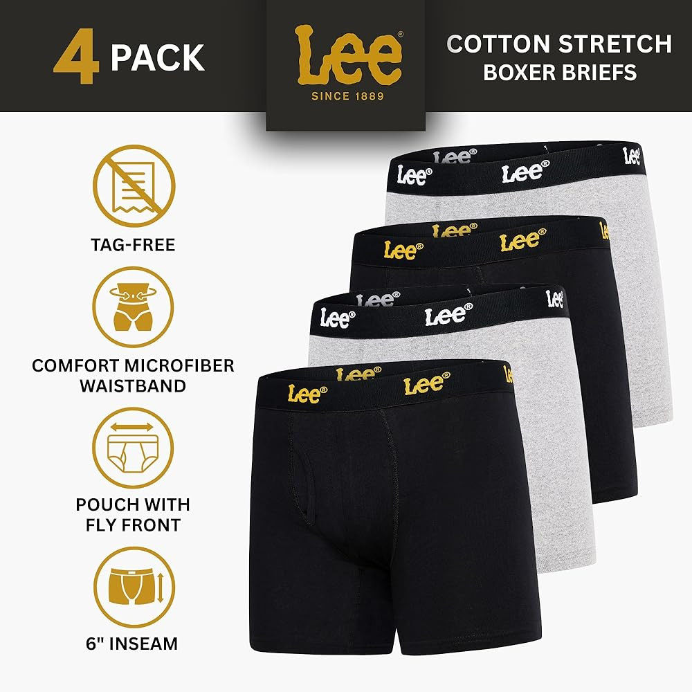 Lee Mens Underwear 4 Pack Boxers for Men Cotton Stretch Boxer Briefs