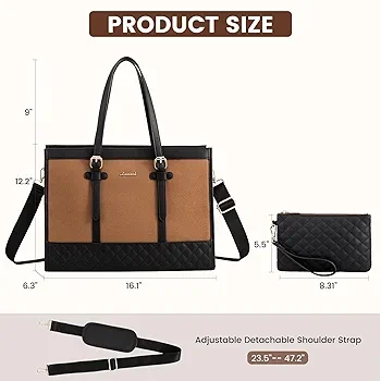 ? LARGE CAPACITY & LAPTOP COMPARTMENT ☛ Size of womens laptop bag: 16.1"*6.3"*12.2".The dedicated laptop compartment provides maximum protection for your device. 2 inner pockets,2 slip pockets, and 1 zipper pocket for small items such as a phone, wallet, makeup, passport, etc.