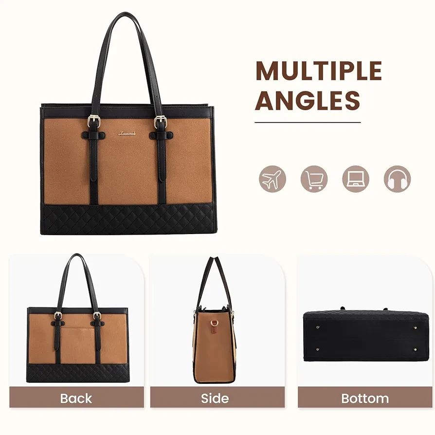 ? STYLISH AND CHIC DESIGN ☛ Our laptop tote bag combines the timeless elegance of leather with the trendy appeal of canvas. The combination of these materials creates a visually striking. Compared to traditional leather laptop bags, canvas laptop tote displays a youthful, fashionable, and relaxed style.