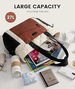 【Spacious Design with Smart Organization】 With dimensions of 16 x 12.8 x 6.2 inches, this tote offers large capacity without the bulk. Multiple internal and external pockets keep your laptop, water bottle, and other travel essentials neatly organized.