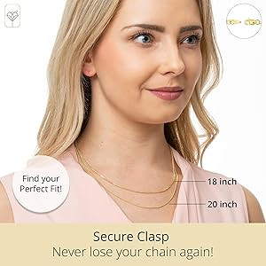 • HYPOALLERGENIC: Women’s and mens gold chain necklace is 100% nickel free and hypoallergenic making it perfect for sensitive skin. It is water resistant, shower safe and sweat proof! This 18 inch gold chain has non-tarnishing properties to maintain its shine over time.
