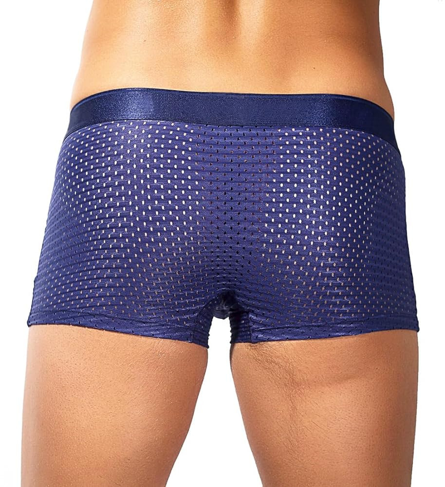 • Mens Boxer Underwear: This fabric added extra mesh design,which made the ice silk underwear became breathable underwear, Look through the picture carefully you will find a lot of small holes,ventilation holes to help keep you cool and comfort. Cool mesh fabric wicks moisture away from the skin to keep you cool and dry.