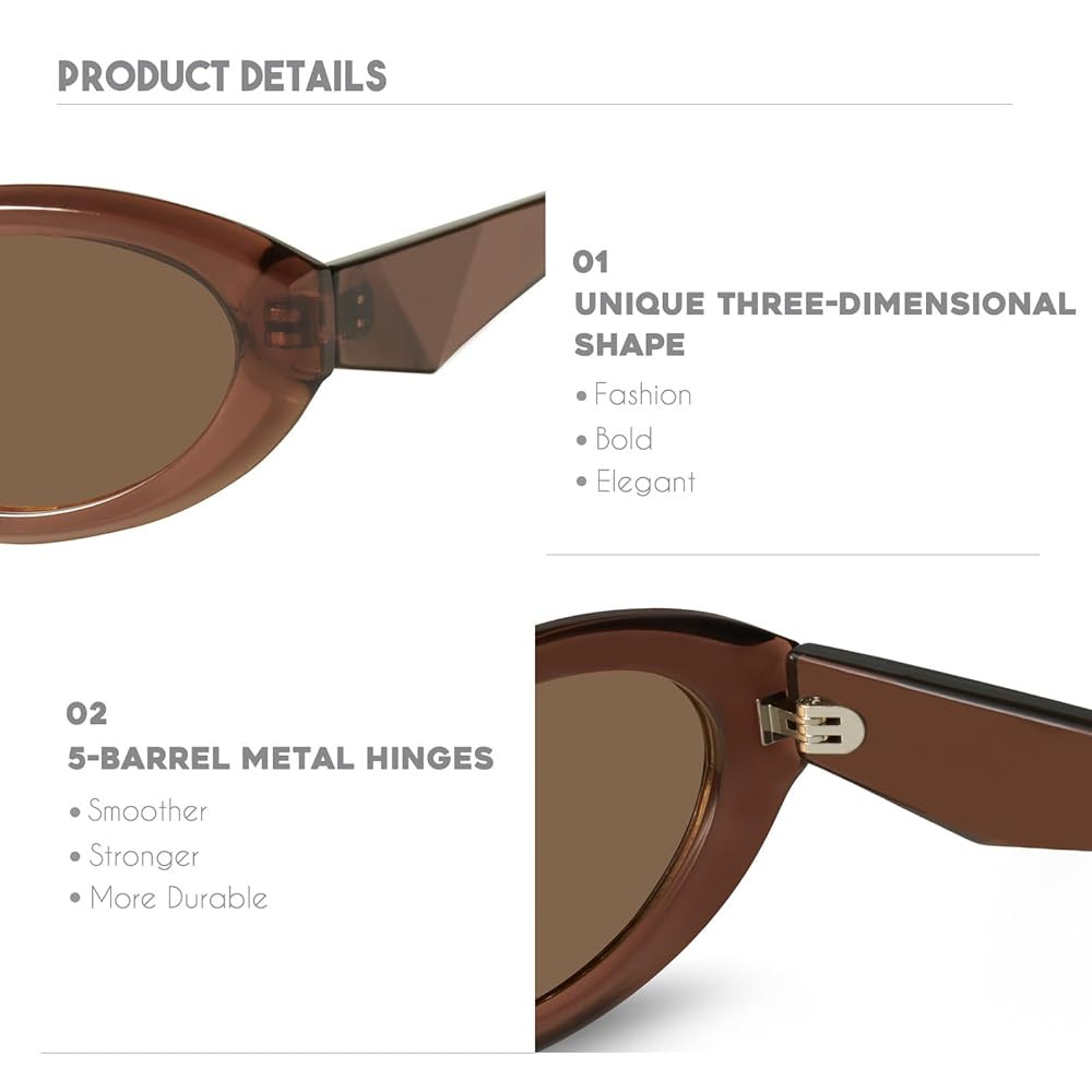 • TRENDY FASHION DESIGN - The sunglasses frame has a retro design that combines oval and cat-eye concepts, giving it a three-dimensional and technological feel