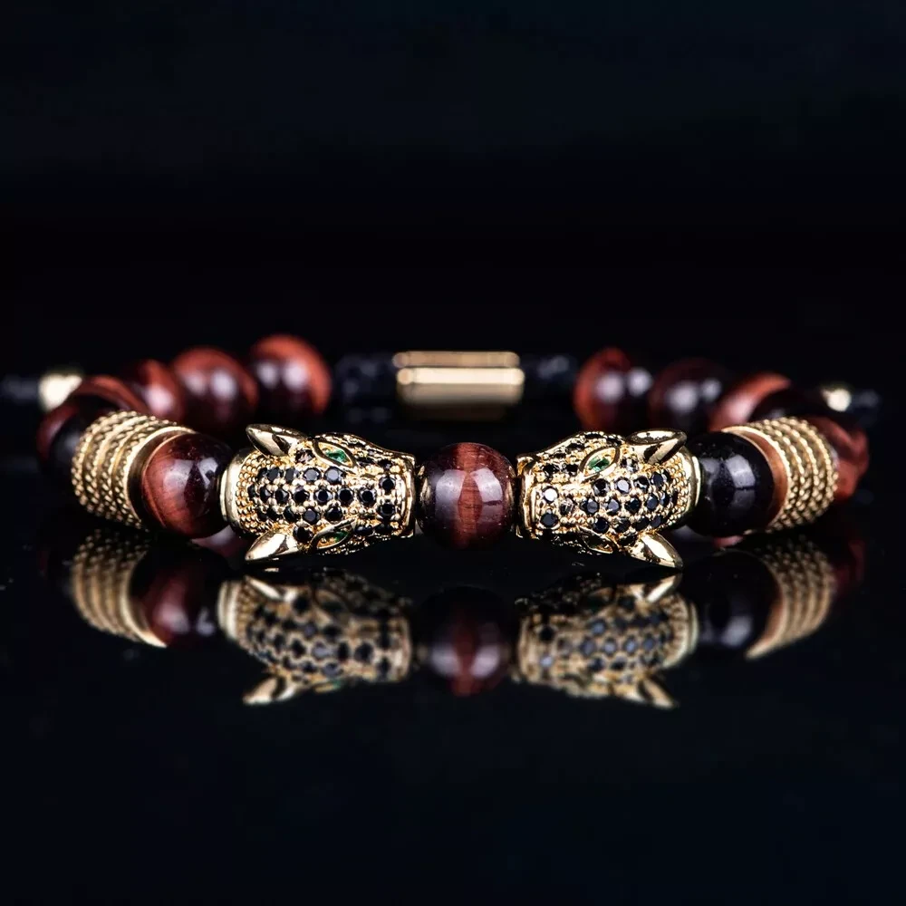 New Trendy Double Leopard head Handmade Tigers eye Bracelet Accessories For Men