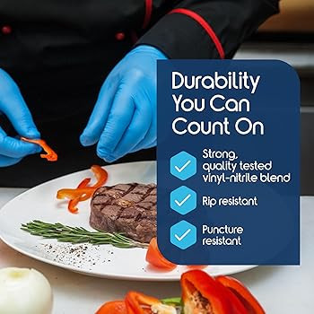 FOOD PREP COOKING GLOVES: Whether you’re preparing meals at home or working in a professional kitchen environment, our cooking gloves disposable food safe properties make these food grade gloves perfect for keeping your hands clean whilst preventing cross-contamination. From handling raw meats to preparing salads and baking goods, these non latex food gloves provide an ideal solution for all your food service needs Food safe gloves disposable convenience. Trusted by food service and chefs.