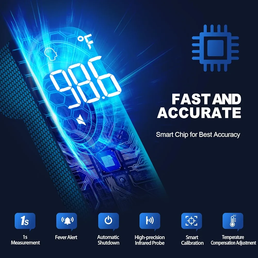 WHAT YOU GET: 1x Forehead Thermometer, 1 x User Manual, 1 x Quick Guide, 2 x AAA Batteries. You will also get 12 months replacement from the date of purchase and 7*24h friendly customer service!