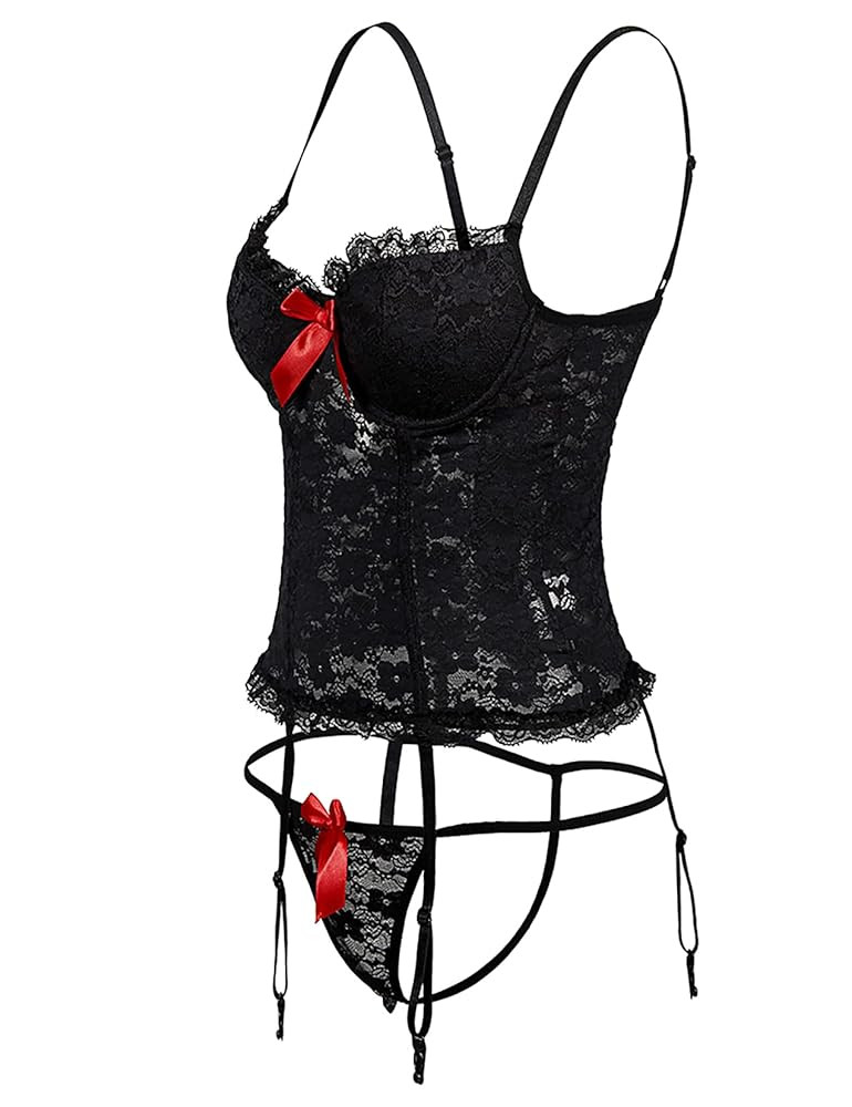 【HIGH QUALITY】: The elegant bodice set uses elastic lace and mesh, skin-friendly and breathable. 3 columns classic design hook closure, can control tummy to make a slim effect and enhance your feminine curves.