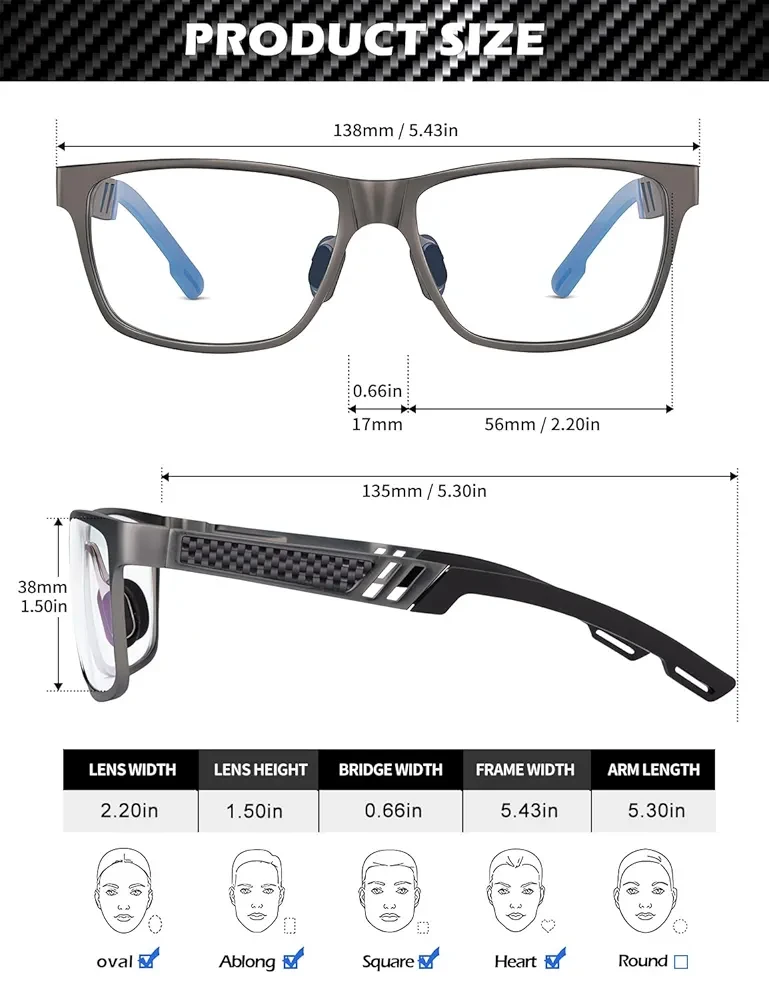 Comfortable Design: This square style frame suitable for many face shapes.The spring hinges of blue light blocking reading glasses men can sits perfectly on all face shape, reduces the squeezing to the head. Rubber nose pads also keep the reader glasses in place and prevent frames from pinching on the bridge of the nose.This pair of glasses also comes with the fordble case for easy storage and protection