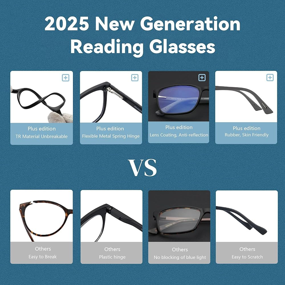 2025 NEW GENERATION - Bluemoky reading glasses men, tr material unbreakable, lens coating,anti-reflection,flexible metal spring hinge,rubber leg, skin friendly