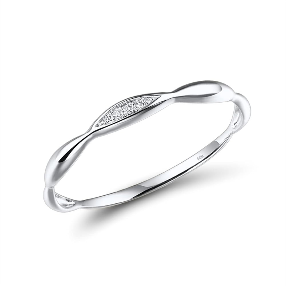 Santuzza 10K Solid Gold Genuine Diamond Dainty Twisted Stacking Ring for Women