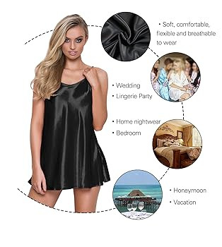 Fabric typeOur sexy satin nightgown makes you have a charming night, and the silk touch fabric helps you have a wonderful sleep.
