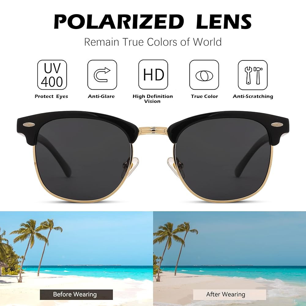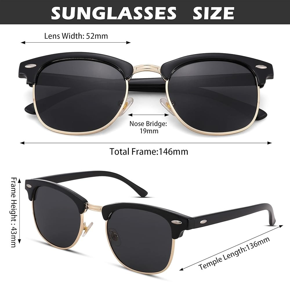 【Semi-Rimless Sunglasses】Unisex semi-rimless style is suitable for any face shapes, and you'll be looked cool by wearing classic semi-rimless sunglasses. Besides, these sunglasses can be used in many outdoor activities, such as taking selfies, cycling, driving, shopping, traveling and hiking. It;s a perfect choice for daily wear all year around.