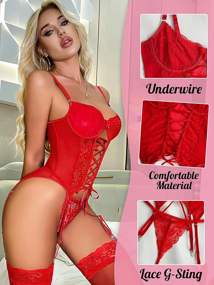 Our valentines lingerie set is sure to impress! This lingerie bodysuit set with garter belt is made with high-quality materials and features delicate lace and accents.This garter lingerie set is perfect for a romantic ni