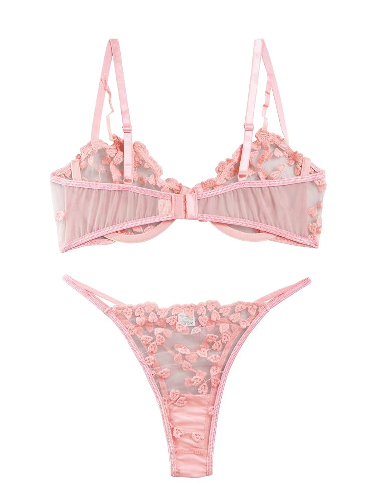 Sexy Underwire Cute Push Up Strappy Embroidered Mesh Sheer Lingerie Set See Through Panty Bra