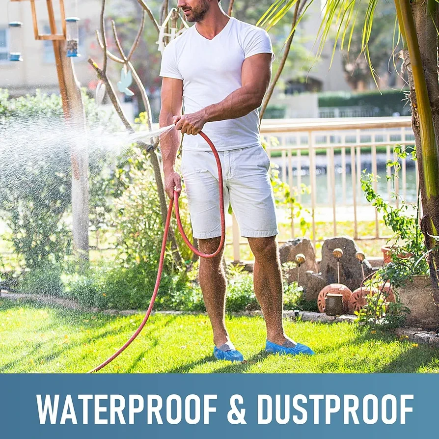 HIGH-QUALITY MATERIALS: Disposable shoe covers using high-quality & extra thick & strong & long-lasting CPE materials, surface non-slip particle design, waterproof, non-slip and tear resistant