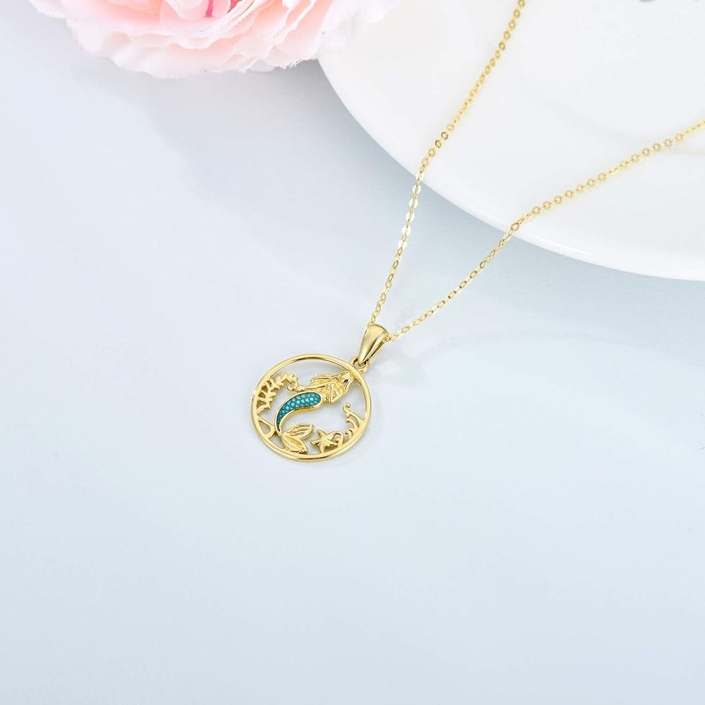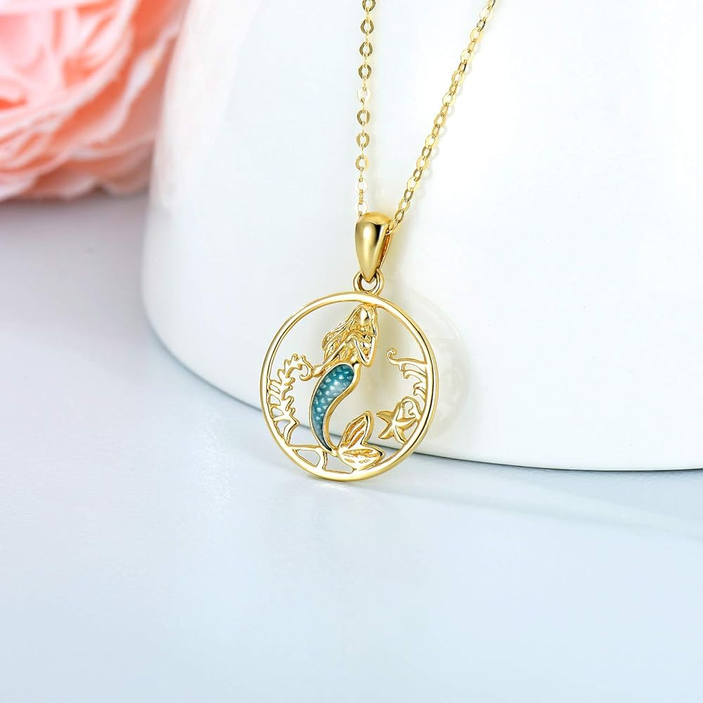 • Gold Mermaid Necklace Material:Solid 14K Gold mermaid jewelry, high polish,nickel-free, lead-free,hypoallergenic and cadmium-free , fit for sensitive skin.
