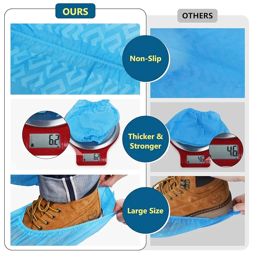 100% recyclable non-woven fabric, 200-pack disposable shoe covers.