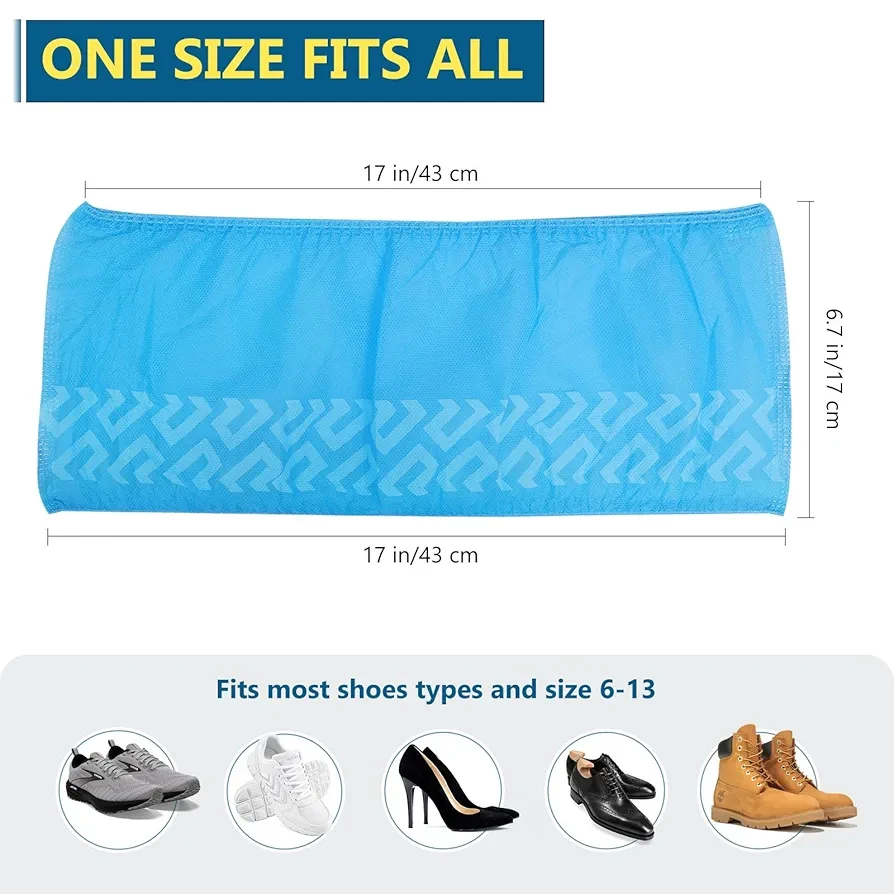 Larger Size: Stretchable size about 16.9" in length, 6.7"(W), shoe covers contain an elastic band for flexibility, suitable for shoe size 6-14 (up to US Men's work boots 12).