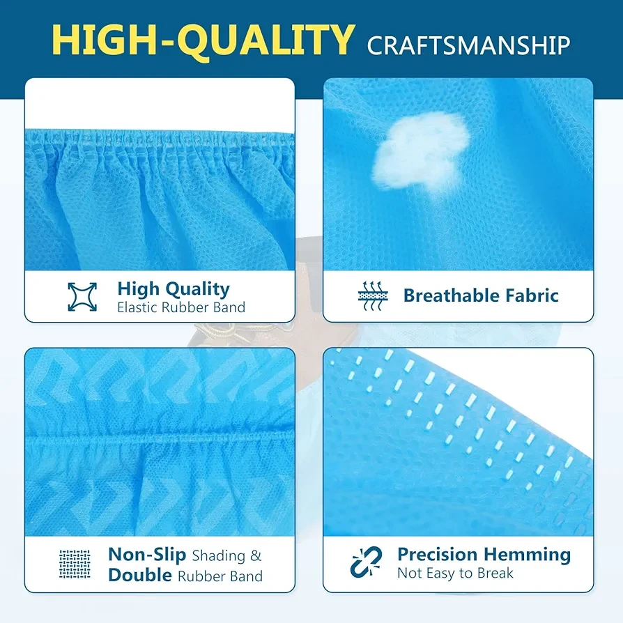 High Quality: Made of 6.2g high quality non-woven material, which makes the shoe cover thicker, stronger and more durable, more breathable, no odor, anti-static, noise reduction. Our protective booties will protect homes, carpets hardwood floors surface and more!