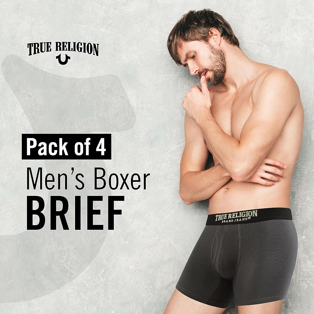 True Religion Mens Boxer Briefs Cotton Stretch Underwear for Men Pack of 4