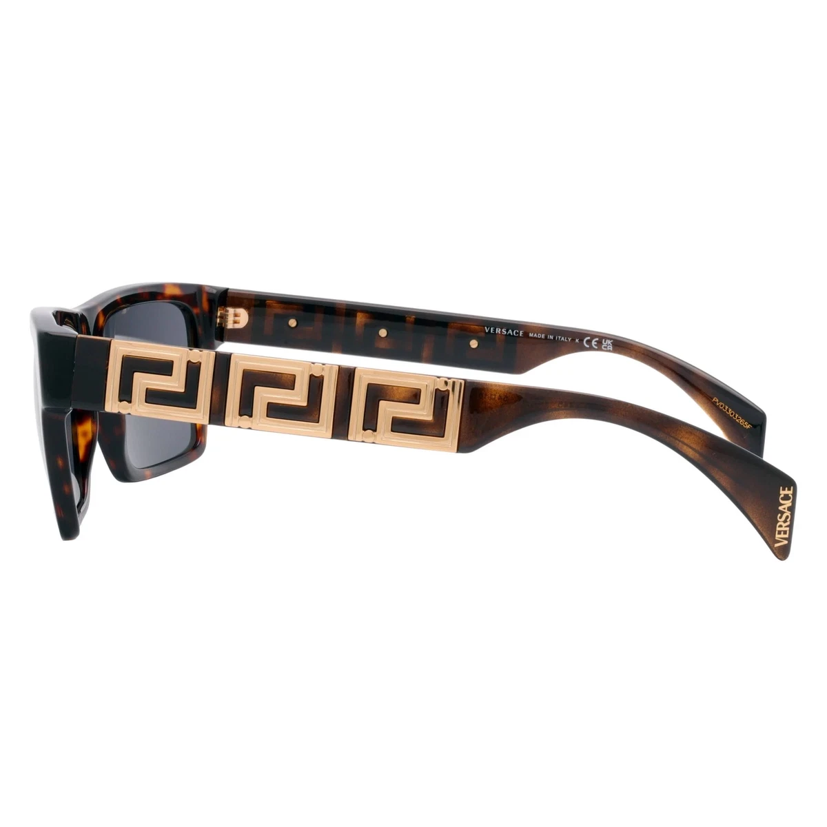 Versace Sunglasses. Series number: VE4445. Color code: 108/87. Shape: Rectangular. Lens Width: 54 mm. Lens Bridge: 19 mm. Arm Length: 145 mm. 100% UV protection. Non-Polarized. Frame Material: Acetate. Frame Color: Havana. Lenses Type: Dark Gray. Rim Style: Full-Rim. UPC/EAN code: 8056597837934. Versace Dark Gray Rectangular Men's Sunglasses VE4445 108/87 54.