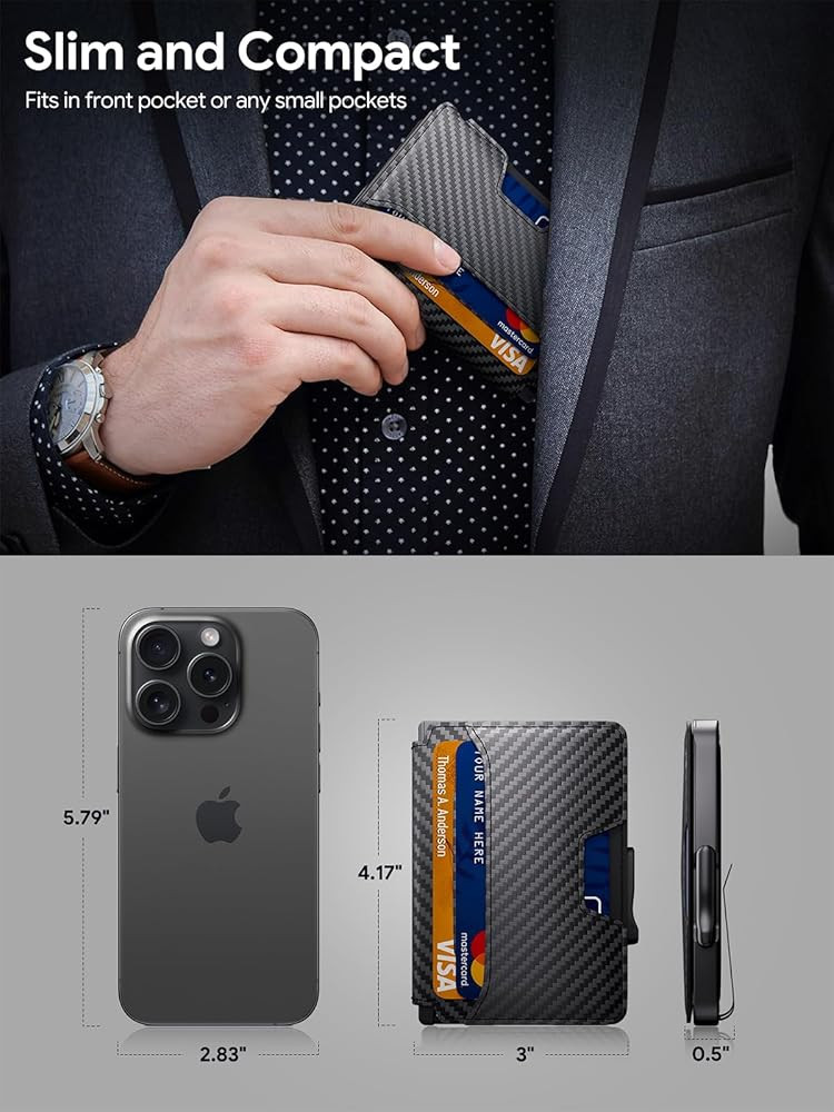 Modern Design & Sturdy Construction: This minimalist wallet for men features the latest combination of a waterproof carbon fiber leather cover and a aluminum card case. Compared to traditional leather wallets, the slim wallet for men is more compact and sleeker, convenient carrying in front pocket, and the aluminum alloy body makes it more durable.