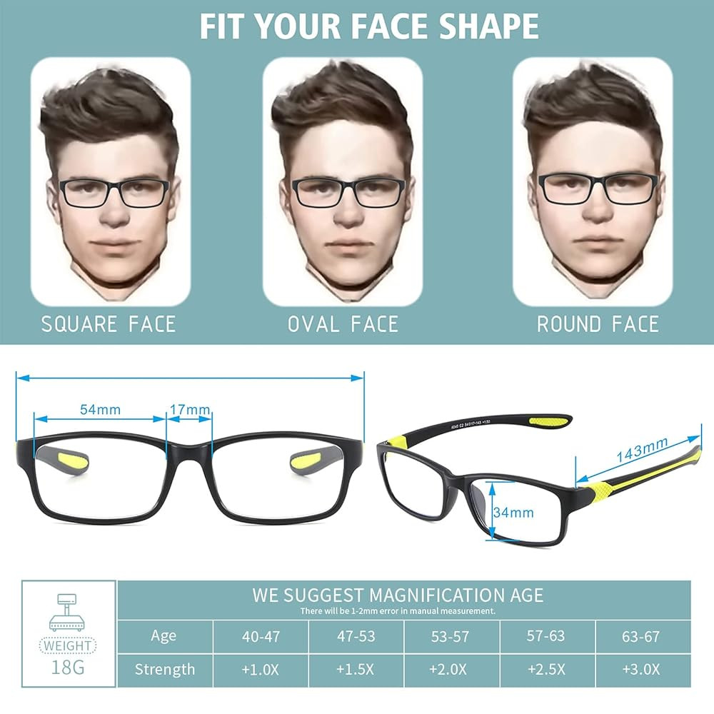 Wide Lightweight Stylish Men's Designer Frame: Sunamoy mens computer reading glasses with stylish small frames and retro rectangle profiles, perfectly show your elegance and trendy. The lightweight and unbreakable material as well as the additional silicone legs and ergonomic large frame design make it comfortable for the reader to wear without pressure and more suitable for long periods of time