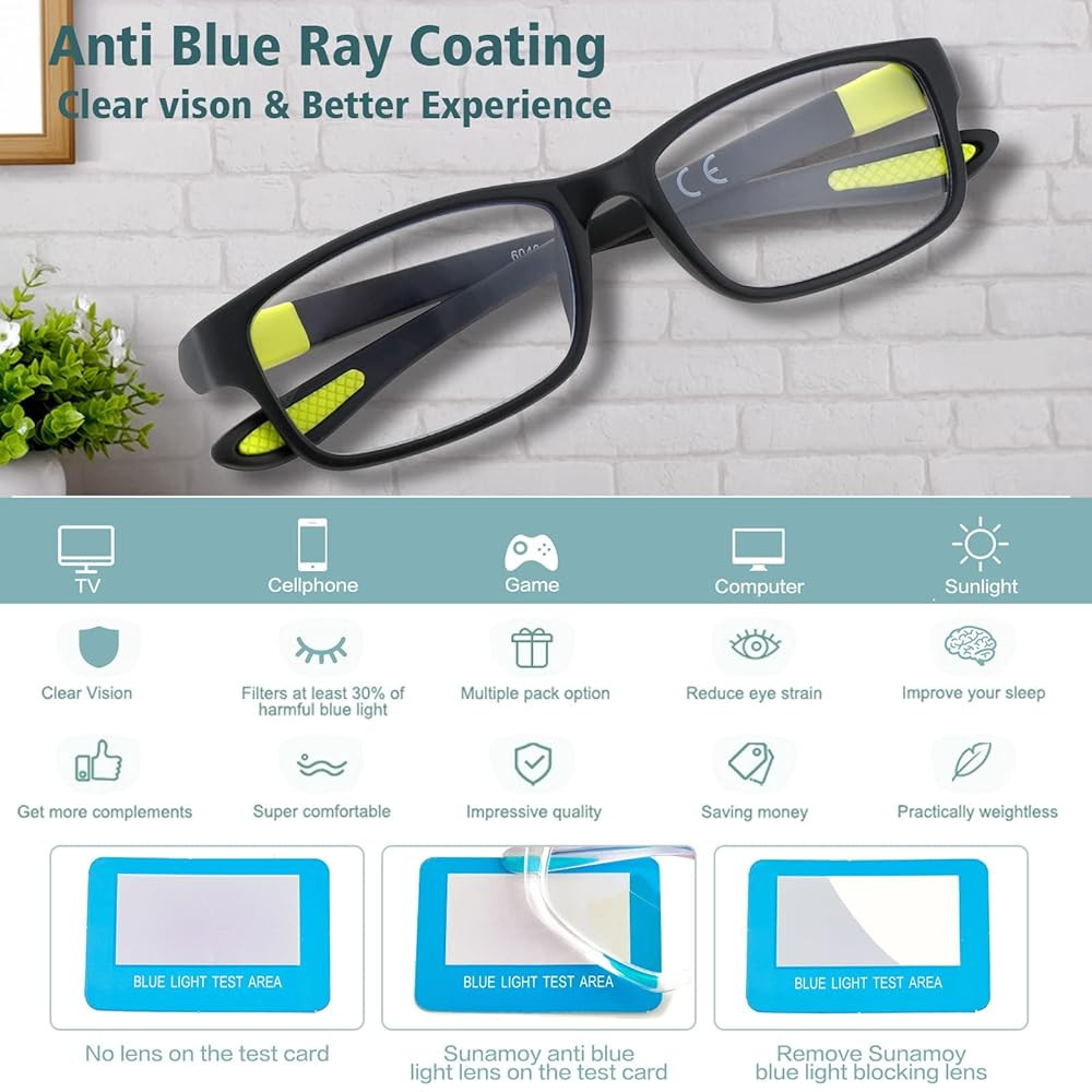 Upgraded Blue Light Blocking Reading Glasses Lens: Mens blue light reading eye glasses with blue light protection anti reflective UV400 and harmful blue screen. Sunamoy computer bluelight reading glasses with tined anti-blue light clear transparent magnifying lens, give readers a clear vision and provide all-day bluelight protection. Dark photo sensitive tinted glasses lenses reduce eye fatigue and eye strain when you use digital products, help you enjoy better sleep and digital time
