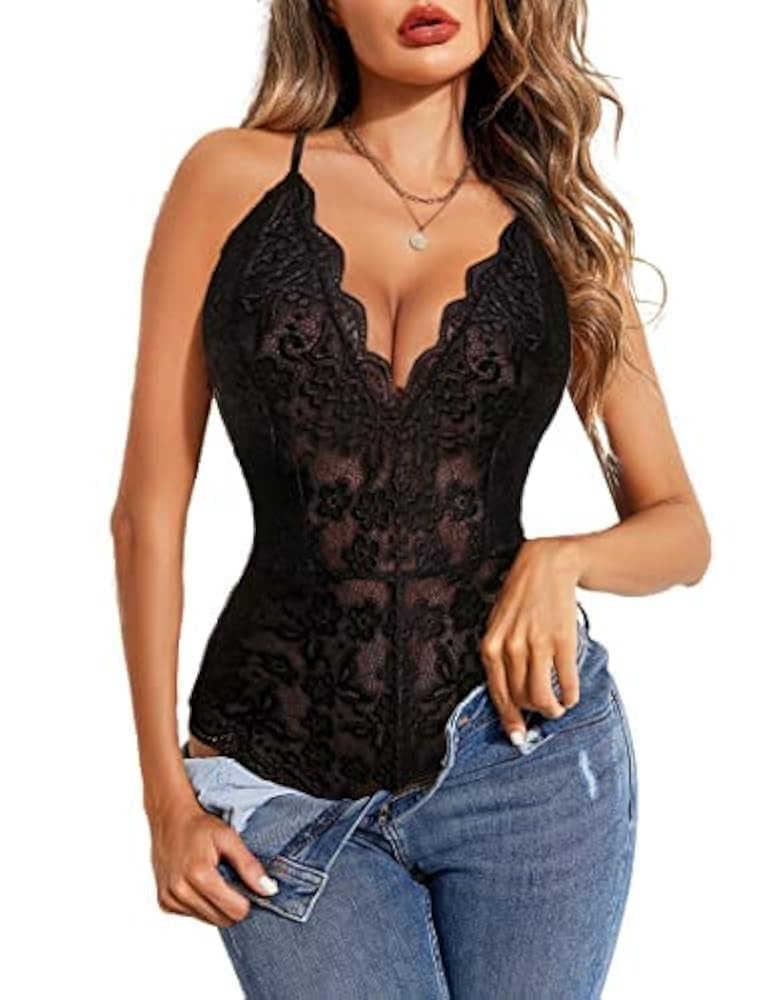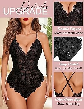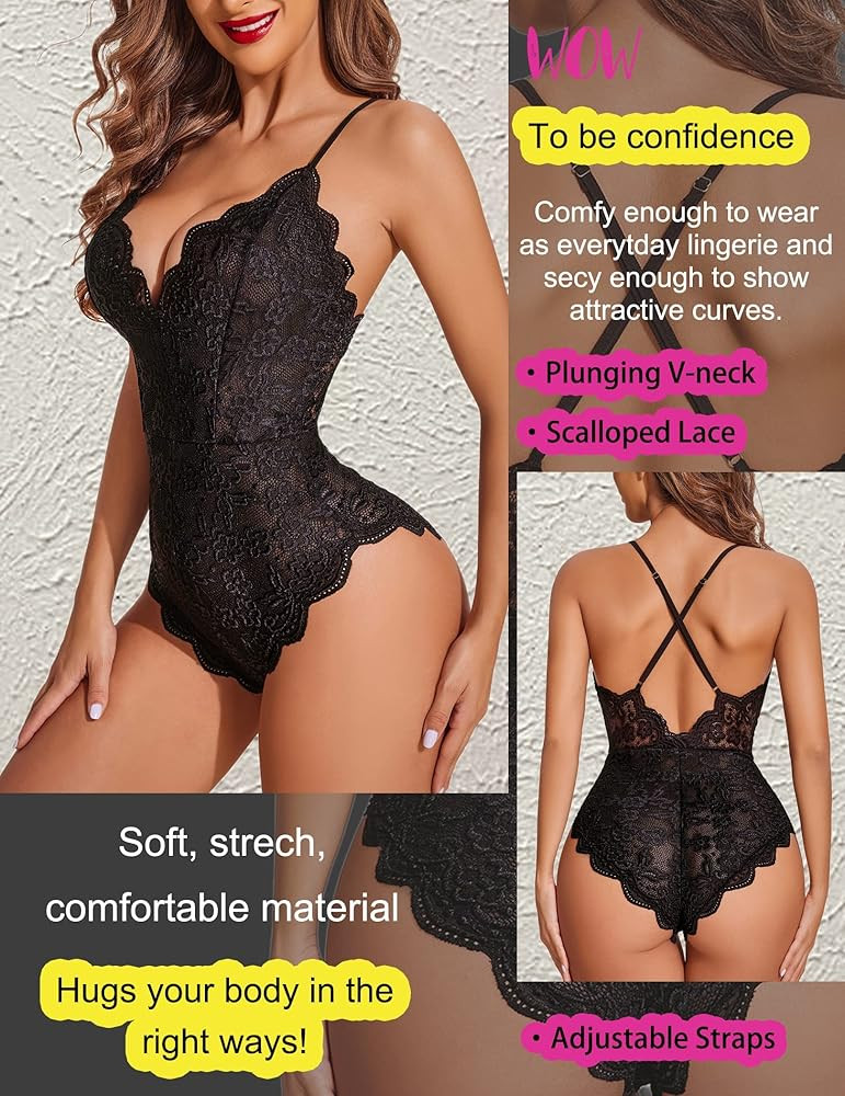Lace bodysuit teddy lingerie for women features with stretch floral lace fabric, bodycon style slim to show off your curve, and adjustable criss cross straps allows for perfect fit.