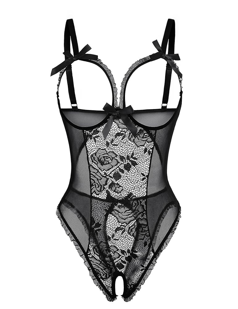 ✿ Features: This teddy lingerie for women featuring cutout bra with ruffle trim and bow decor, hook and eye closure, delicate floral lace and mesh panel , adjustable shoulder strap help you get the best fit.