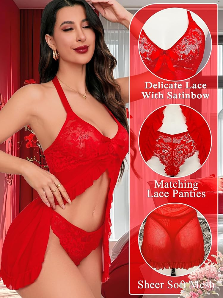 This lace babydoll lingerie dress that perfectly encapsulates sultriness and elegance. The stunning lace design captures the eye and stirs the imagination, making it a must-have in your wardrobe.
