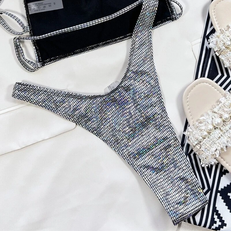 Features: Two pieces bikini swimsuit set, low rise thong bikini bottoms, minimal coverage push up bras underwire, unique strappy designs.