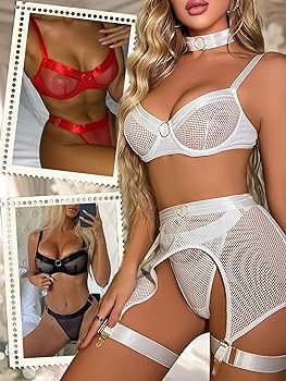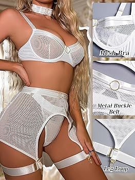 Package Content: 1 x sheer mesh bra with sexy garter belts, 1 x Matching thongs, 2 x Thigh garters,1 x choker