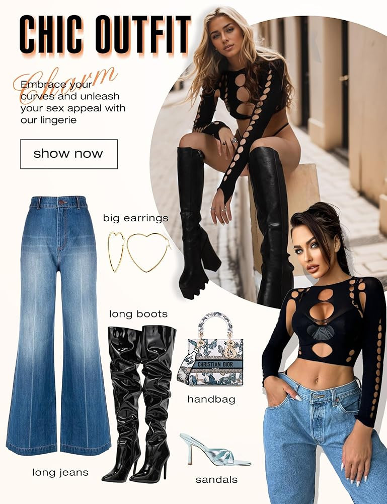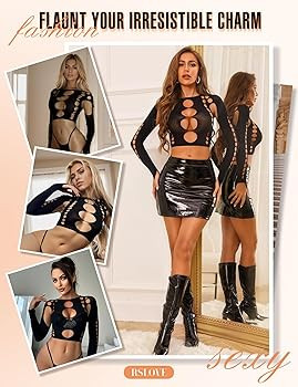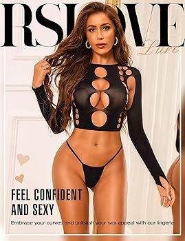 Embrace Your Curves: This mesh long sleeve top features a seductive hollow design that accentuates the chest, waist, and arms, perfectly showcasing your beautiful curves. It exudes a sexy, midriff-baring, spicy vixen style that aligns with the current hottest fashion trends. With just one second of putting it on, you will transform into a seductive and mischievous wildcat, stunning your beloved. Put on this lingerie set and experience ultimate sensuality.