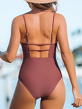 Women Swimsuit One Piece Bathing Suit Square Neck Cutout Back Tummy Control with Adjustable Spaghetti Straps