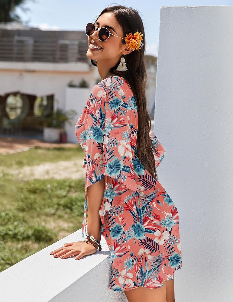 Tropical Vacation Outfits for Women: Wearing a brightened hawaiian cover up, immediately attracts all eyes with unique print style