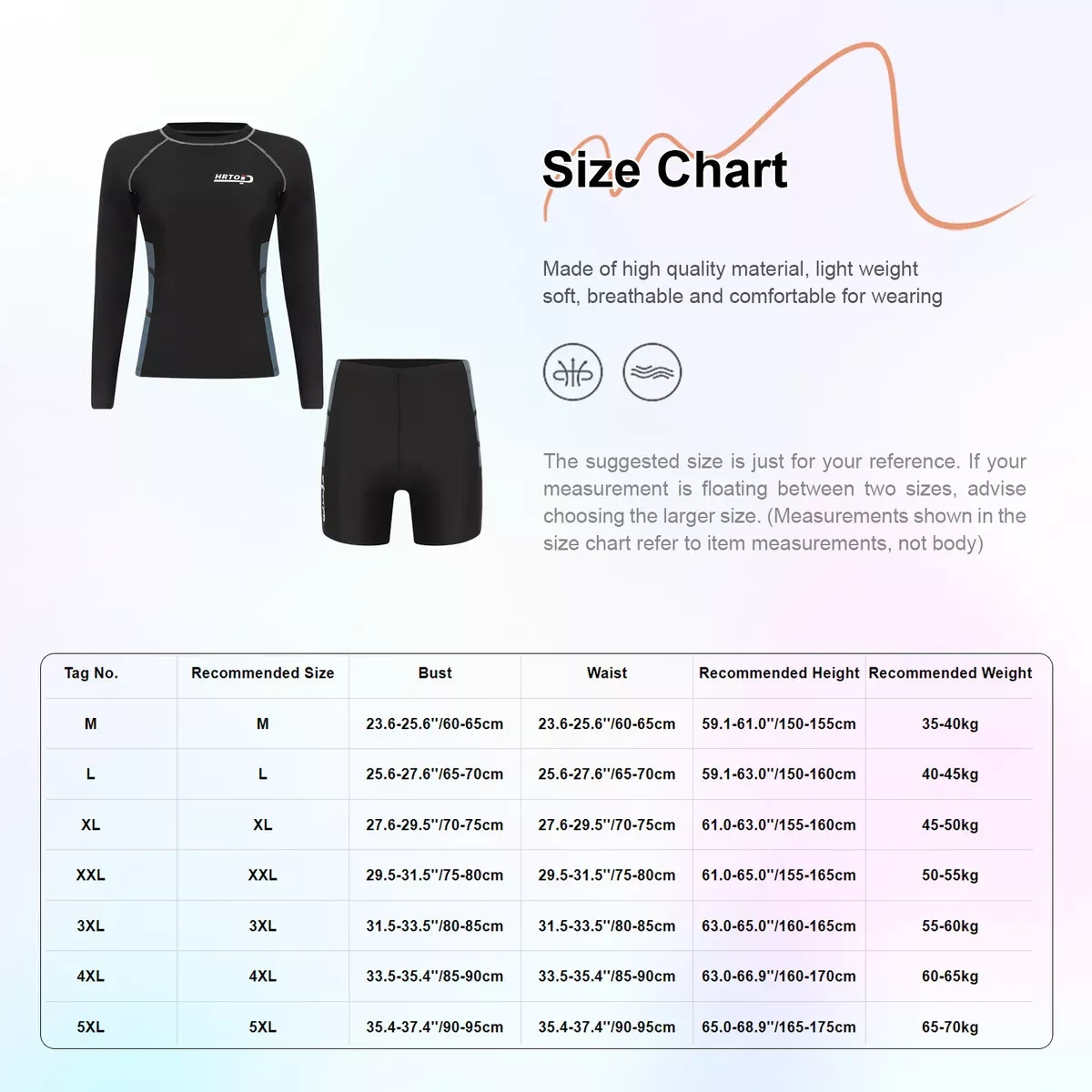 Full coverage rash guard set guarantee protection from sunburn and UV rays. Quickly-dry fabric keeps you always feel cool and dry.