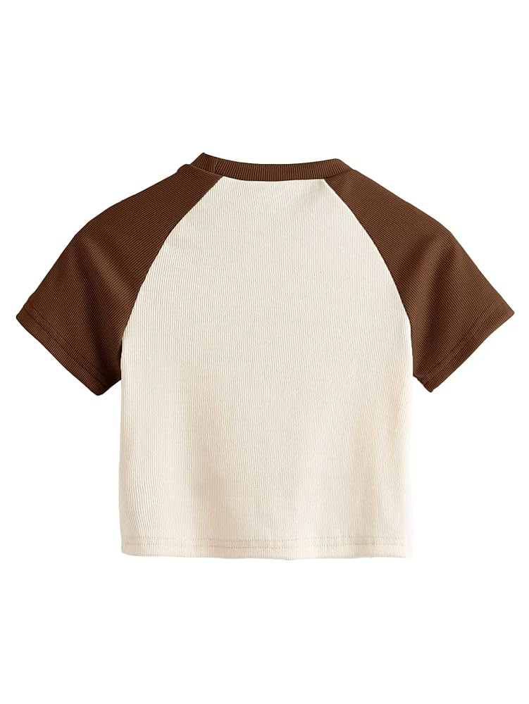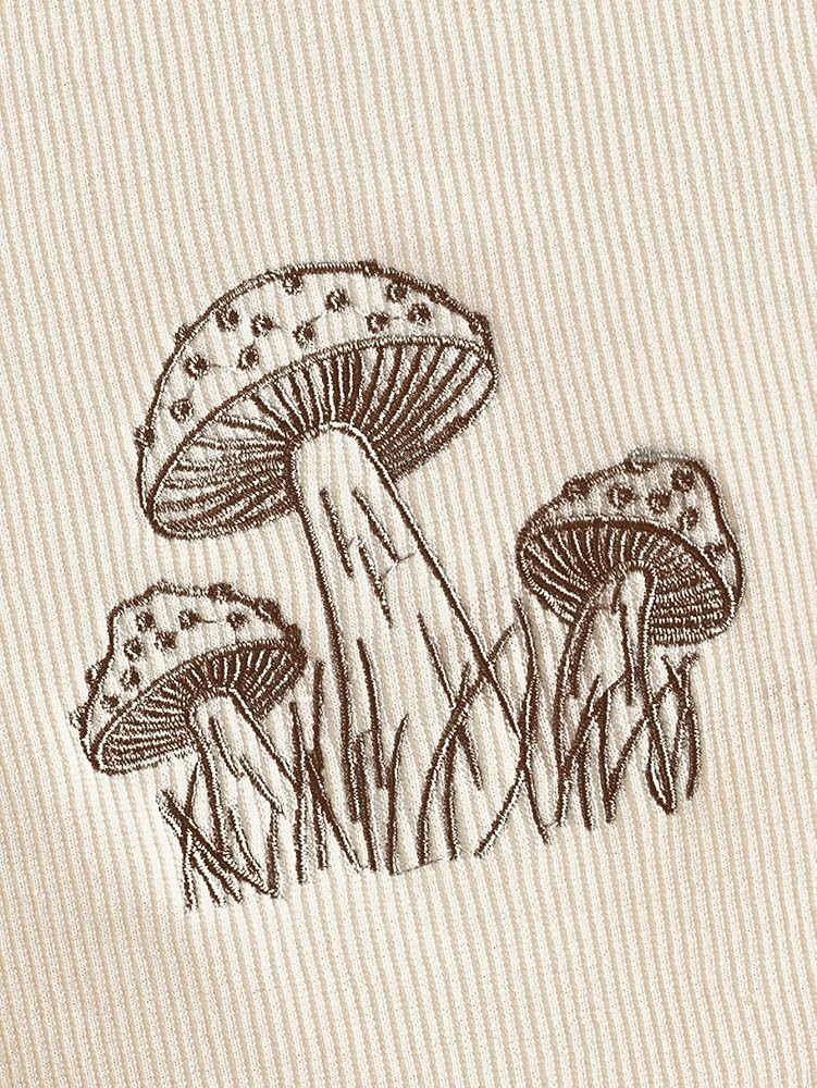 Feature:Cute mushroom graphic crop tops, color block, knit tops, short sleeve,fairy grunge clothes, ruched bust