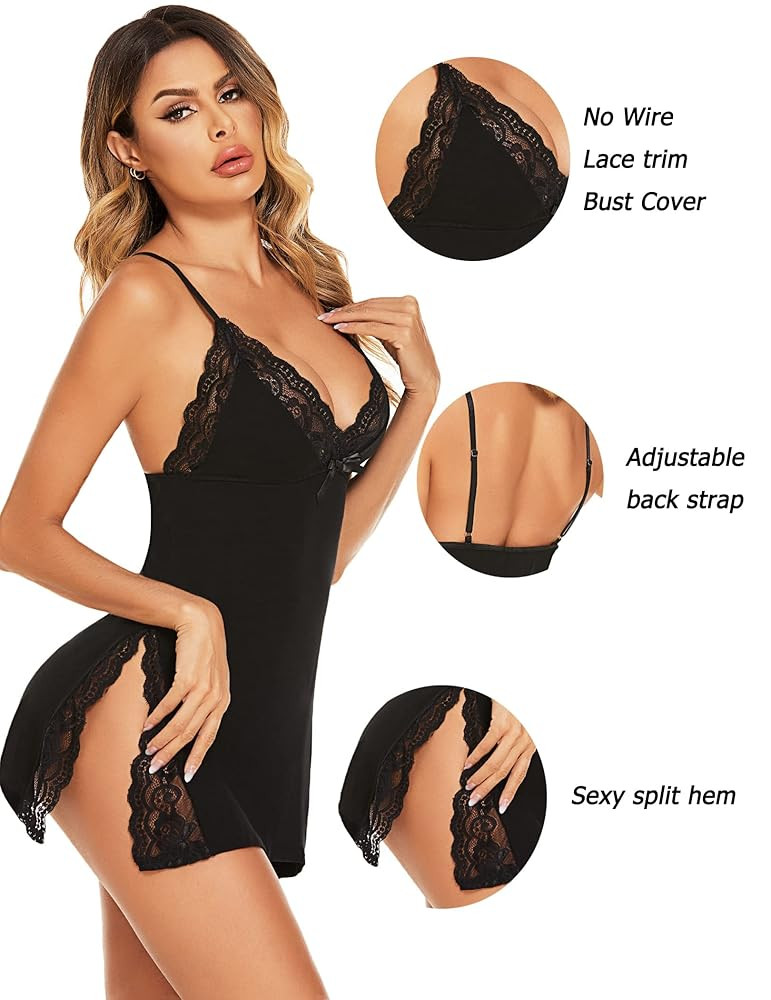 ★ Unique Design:Lace chemise is design of dual side slits will perfect show your sexy leg curve.Hollowed back design makes you look very slim, sets off the shoulder and neck lines, shows your sexy butterfly bones, makes the whole back very sexy, and deeply attracts the attention of your lover.