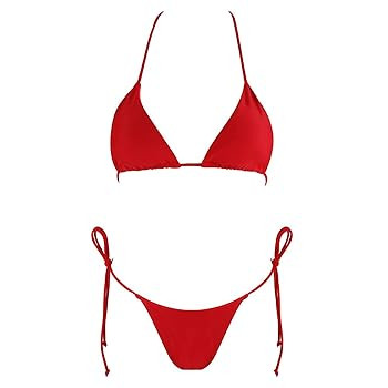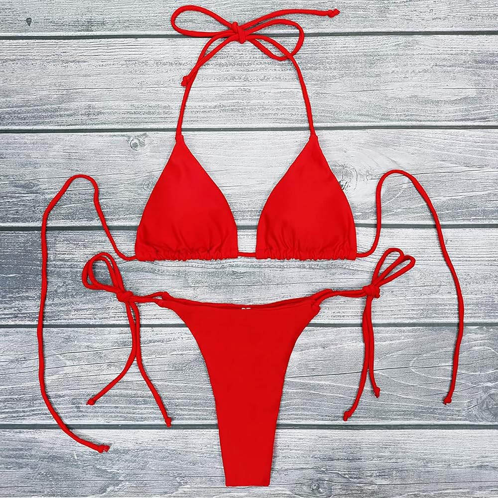 EVAbaby Women Trendy Bikini Set Two Piece Bathing Suit Swimsuit Triangle Halter Top Sexy Tie Side Thong