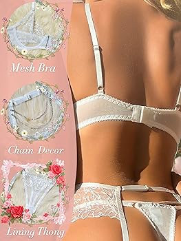 Elegance and Sensuality: This sexy mesh lingerie is crafted with exquisite floral embroidery, adding a touch of elegance to these intimate pieces. The delicate chain detailing offers a unique fusion of allure and style, aiming to make every woman feel confident and sensual.