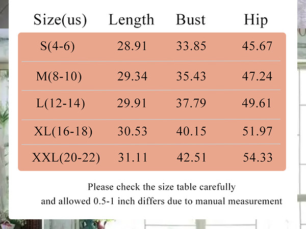 【Size】S=US(4-6),M=US(8-10),L=US(12-14),XL=US(16-18),XXL=US(18-20);Please allow 1 inch/2cm measurement difference.
