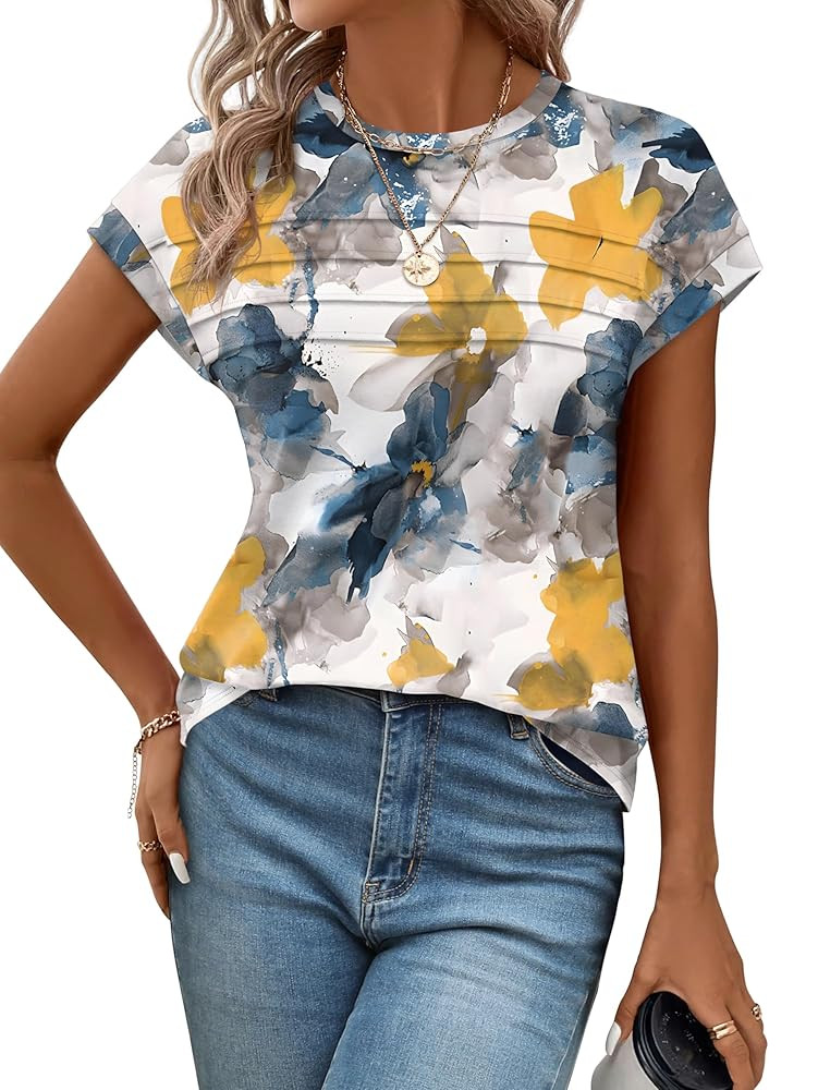 FEATURE: Designed with a flattering crew neck, cap sleeve, and a flowy pleated front, this womens t shirt combines style and comfort, making it one of the best short sleeve shirts for women